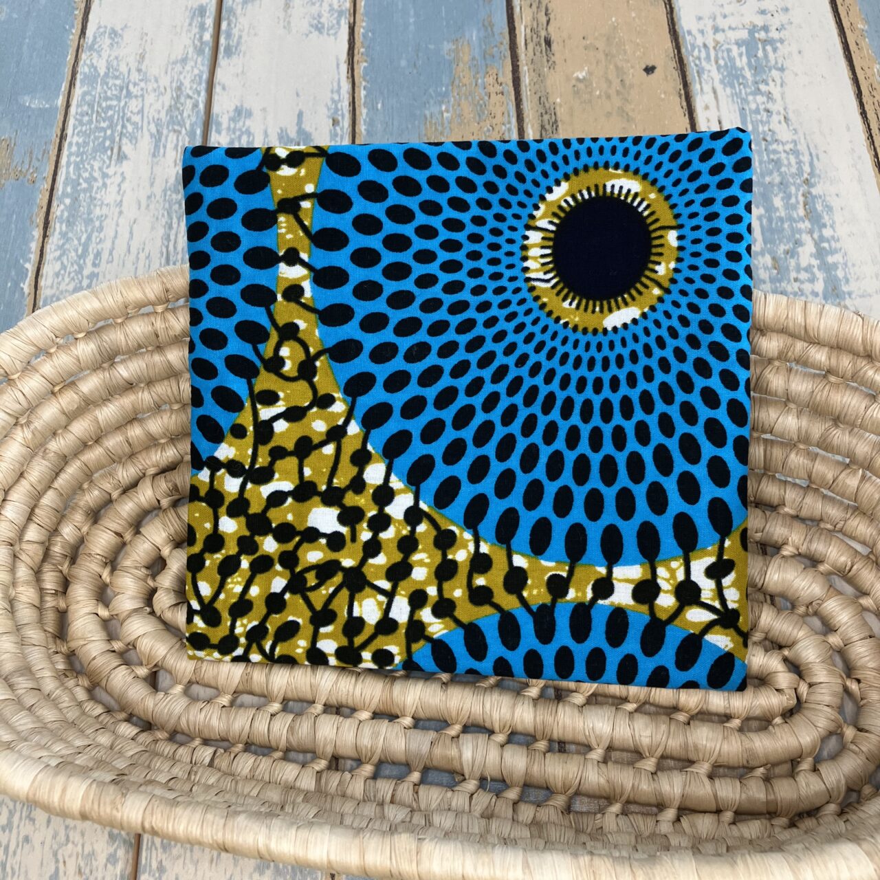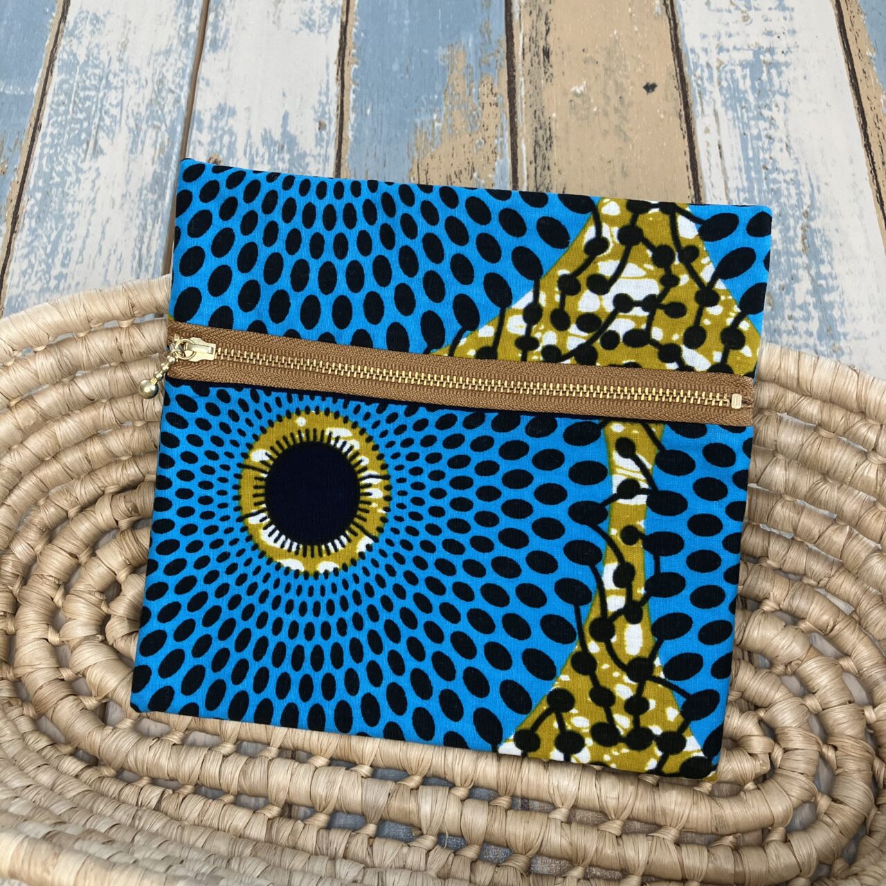 アフリカンファブリックポーチ(横開き)アイ柄 イエロー×ブルー